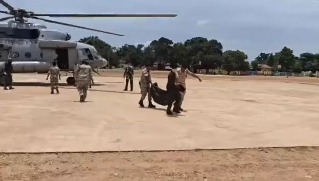 अनादि न्यूज़ डॉट कॉम, नारायणपुर। माड़ के जंगल में एनकाउंटर में मारे गए नक्सलियों के शव लेकर जवान लौट आए है। कल मुठभेड़ में 1.5 करोड़ का इनामी बसव राजू समेत 27 नक्सली ढेर हुए थे। ख़राब मौसम की वजह से उनके शवों को लाने में थोड़ी दिक्कत हुई, आज उनके शव ज़िला मुख्यालय रवाना किए गए।