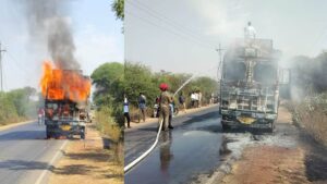 आरंग–खरोरा मुख्य मार्ग पर चावल से भरे ट्रक में भीषण आग; फायर ब्रिगेड ने मशक्कत के बाद पाया काबू