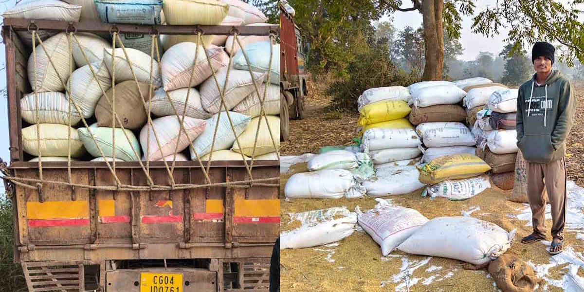 ओडिशा से तस्करी कर लाया गया 611 कट्टा धान मक्का बाड़ी में पकड़ा गया, पुलिस ने पूरा स्टॉक जब्त किया।