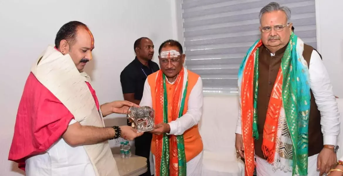 अनादि न्यूज़ डॉट कॉम,रायपुर। मुख्यमंत्री विष्णुदेव साय ने आज राजनांदगांव के क्लब हाऊस सन सिटी में प्रसिद्ध कथावाचक पंडित प्रदीप मिश्रा से सौजन्य मुलाकात की। मुख्यमंत्री विष्णु देव साय एवं विधानसभा अध्यक्ष डॉ. रमन सिंह ने उन्हें शाल-श्रीफल प्रदान कर सम्मानित किया तथा स्मृति चिन्ह के रूप में बेलमेटल की नंदी की मूर्ति भेंट की। मुख्यमंत्री ने कहा कि पावन श्रावण मास चल रहा है, इस दौरान आपसे मुलाकात करने का मुझे सौभाग्य प्राप्त हुआ।
