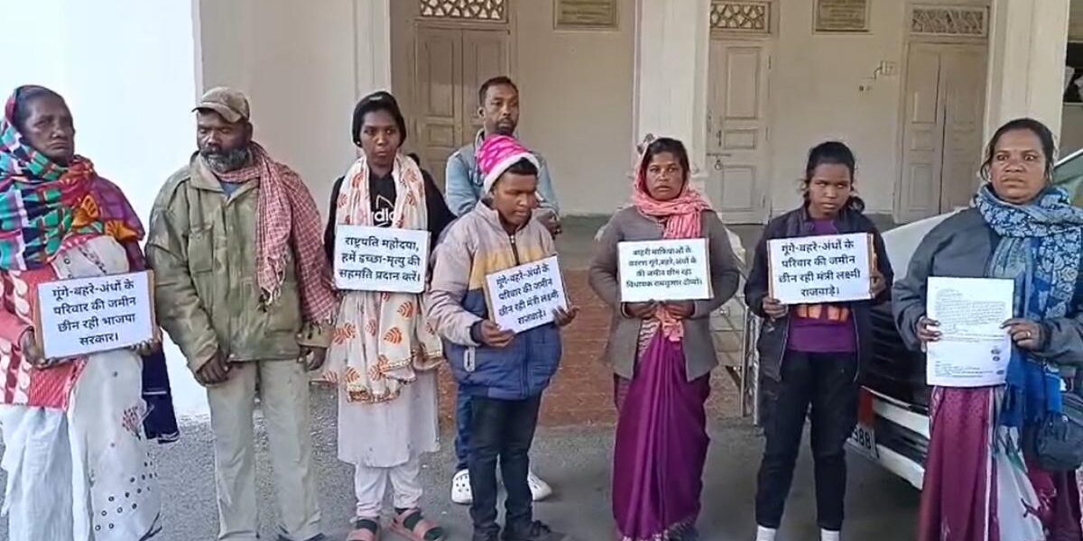 कलेक्ट्रेट पहुँचा दिव्यांग परिवार, इच्छा मृत्यु की मांग; कब्जाई गई जमीन पर आंगनबाड़ी भवन बनने से परेशान