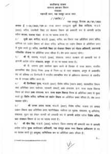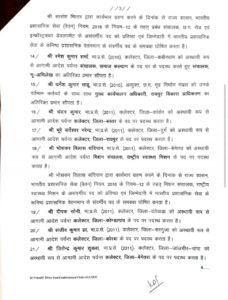सामान्य प्रशासन विभाग के सचिव डॉ. कमलप्रीत सिंह ने आदेश जारी किया है। रायपुर के कलेक्टर सौरभ कुमार को बिलासपुर जिले का कलेक्टर बनाया गया है। दुर्ग कलेक्टर भूरे सर्वेश्वर नरेन्द्र को रायपुर की जिम्मेदारी दी गई है।