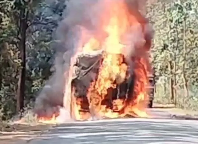 सुकमा। चलते ट्रक में टायर फटने के बाद भीषण आग लग गई, जिसके बाद ड्राइवर और हेल्पर ने गाड़ी से कूदकर अपनी जान बचाई, आग लगने का कारण टायर फटना बताया जा रहा है, सुकमा जिला के पकेला के पास NH 30 में ये घटना हुई है।