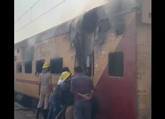 अनादि न्यूज़ डॉट कॉम, दुर्ग। बड़ी खबर सामने आ रही है। यहां ट्रेन के एक बोगी में भीषण आग लग गई। घटना के बाद अफरातफरी का माहौल हो गया। आग की लपटों को देखते हुए मौके पर पहुंची रेलवे और दमकल विभाग की टीम ने तुरंत बचाव कार्य शुरू किया। मिली जानकारी के अनुसार, घटना दुर्ग रेलवे स्टेशन का है। बताया जा रहा है कि गुड शेड यार्ड है जो दुर्ग स्टेशन में है। इस जगह पर खाली ट्रनों को खड़ा किया जाता है। इसी दौरान यहां पर एक खड़ी ट्रेन के एसी कोच में भीषण आग लगी है। देखते ही देखते आग इतना विकराल रूप ले लिया कि दूर दूर तक इसके धुए दिखाई दे रहे थे। इस भीषण आग से एक बोगी पूरी तरह से जलकर खाक हो गई है। सूचना के बाद मौके पर पहुंची फायर ब्रिगेड की टीम की मदद से आग पर काबू पाने की कोशिश कर रही है। बताया जा रहा है कि तीन से अधिक फायर बिग्रेड की गांड़ियां आग पर काबू पाने के लिए लगी हुई है। रेलवे प्रबंधन के अधिकारी भी यहां पर मौजूद है। हालंकि राहत की बात ये है कि इस घटना से किसी प्रकार की हताहत की खबर नहीं है। फिलहाल आग किस वजह से लगी है इसकी जानकारी सामने नहीं आई है।