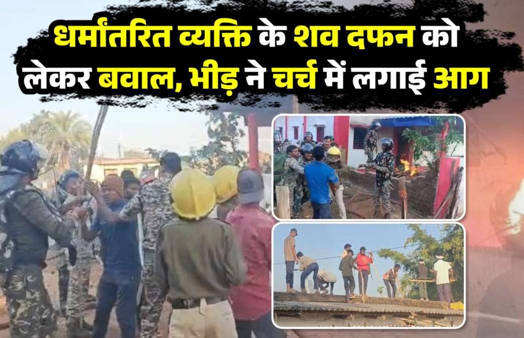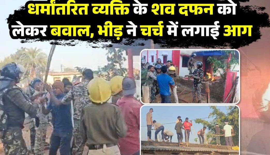 धर्मांतरण विवाद में बवाल—शव दफन पर ग्रामीणों का आक्रोश, चर्च को नुकसान
