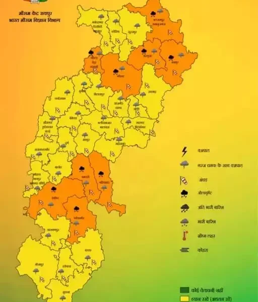 अनादि न्यूज़ डॉट कॉम, रायपुर। 9 जिलों के लिए ऑरेंज अलर्ट जारी किया गया है। मौसम विभाग के मुताबिक सरगुजा, बलरामपुर, जशपुर, कोरबा, गौरेला-पेन्ड्रा-मरवाही, धमतरी, गरियाबंद, कांकेर और कोन्डागांव में बारिश के साथ ओले गिर सकते हैं। रायपुर सहित कुछ जिलों में सुबह से बादल छाए हैं, ठंडी हवा चल रही है।