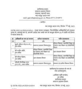 जारी आदेश अनुसार अब तक बिना विभाग के जीएडी पूल में रहीं उप सचिव अंकिता गर्ग को कौशल विकास,तकनीकी शिक्षा और आईटी, राजीव अहिरे को इनसे मुक्त कर जल संसाधन, रविंद्र मेढ़ेकर को जल संसाधन से हटाकर कौशल विकास, अवर सचिव दीपशिखा भगत को जीएडी पूल से पंचायत ग्रामीण विकास पदस्थ किया गया है।