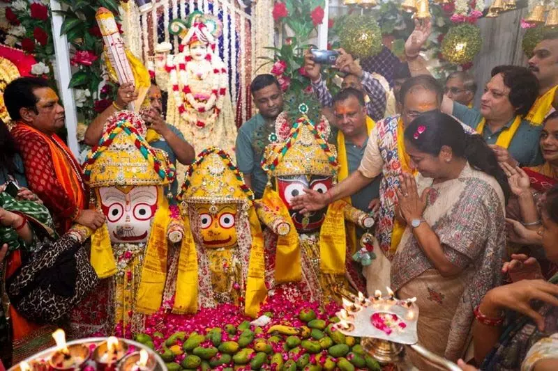 अनादि न्यूज़ डॉट कॉम, दिल्ली: दिल्ली की मुख्यमंत्री रेखा गुप्ता रविवार को कमला नगर में श्री जगन्नाथ रथ यात्रा के भव्य आयोजन में हजारों श्रद्धालुओं के साथ शामिल हुईं। गीता भवन और पंचायती भवन द्वारा आयोजित इस पवित्र जुलूस में भगवान जगन्नाथ, भगवान बलभद्र और देवी सुभद्रा को ले जाने वाला पारंपरिक रथ शामिल था। कमला नगर की सड़कें भक्तिमय मंत्रों, भजनों और अनुष्ठानों से जीवंत हो उठीं, क्योंकि शहर भर से लोग सदियों पुराने इस उत्सव में शामिल हुए।