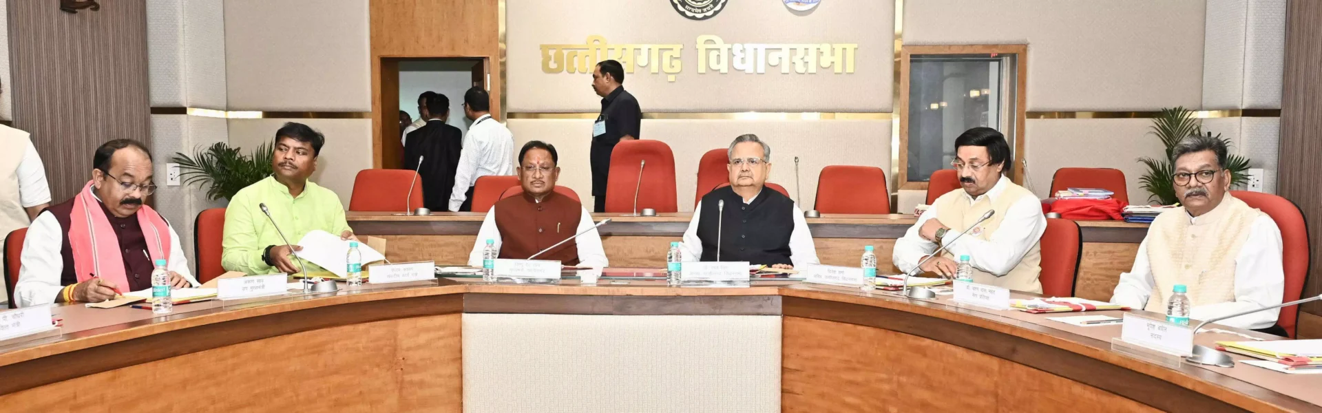 अनादि न्यूज़ डॉट कॉम, रायपुर। विधानसभा अध्यक्ष डॉ रमन सिंह की अध्यक्षता में विधानसभा के समिति कक्ष में कार्य मंत्रणा समिति की बैठक आयोजित की गई। बैठक में मुख्यमंत्री विष्णु देव साय, नेता प्रतिपक्ष डॉ. चरणदास महंत, उपमुख्यमंत्री अरुण साव, संसदीय कार्य मंत्री केदार कश्यप, वित्त मंत्री ओ पी चौधरी, कृषि मंत्री रामविचार नेताम, विधायक अजय चंद्राकर, विधायक धर्मजीत सिंह सहित समिति के अन्य सदस्य उपस्थित थे।