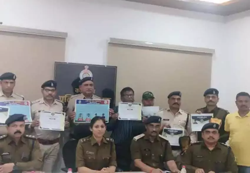 अनादि न्यूज़ डॉट कॉम ,मरवाही। गौरेला-पेंड्रा-मरवाही में साइबर सेल के 4 कर्मचारियों को ‘कॉप ऑफ द मंथ’ का अवार्ड दिया गया है। चारों ने ब्लाइंड मर्डर की गुत्थी सुलझाकर 48 घंटे के भीतर आरोपियों को गिरफ्तार किया था। आसनसोल, पश्चिम बंगाल से ठगी के मुख्य आरोपी को पकड़कर जीपीएम लाने वाली टीम को भी प्रशस्ति पत्र देकर सम्मानित किया गया। एसपी भावना गुप्ता ने गौरेला थाना क्षेत्र के ग्राम जोगीसार में हुए अंधे कत्ल के मामले को सुलझाने वाले साइबर सेल के प्रधान आरक्षक रवि त्रिपाठी, चौपाल कश्यप और आरक्षक हर्ष गहरवार और इंद्रपाल आर्मो को ‘कॉप ऑफ द मंथ’ के खिताब से नवाजा है। इन कर्मचारियों की तस्वीरें सभी थानों, चौकियों और कार्यालयों में पूरे माह के लिए प्रदर्शित की जाएंगी। इसी प्रकार ठगी के मामले में मुख्य आरोपी की पहचान कर पश्चिम बंगाल के आसनसोल से गिरफ्तार करने वाली टीम के उप निरीक्षक श्यामलाल गढ़वाल, सहायक उप निरीक्षक मनोज हनोतिया और प्रधान आरक्षक अजय सिंह को प्रशस्ति पत्र देकर सम्मानित किया गया है।