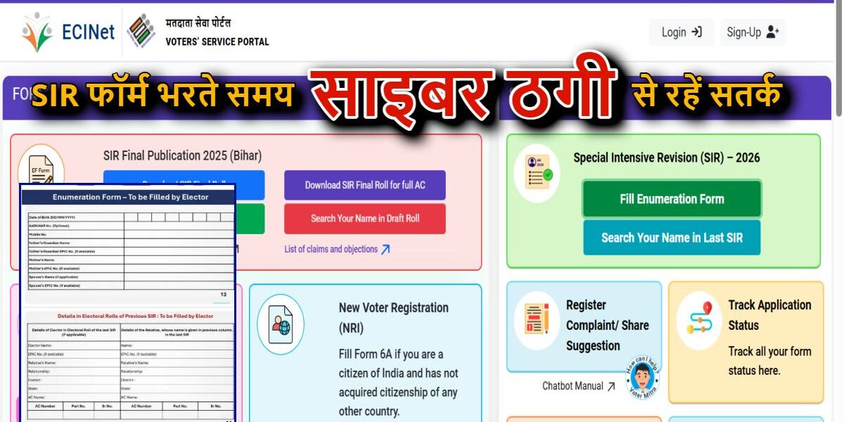 “सावधान! SIR फॉर्म के नाम पर बढ़ा साइबर ठगी का खतरा; मुख्य निर्वाचन पदाधिकारी ने नागरिकों से OTP साझा न करने की अपील की।”
