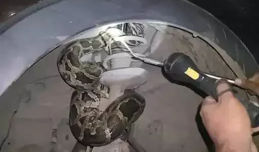 कार से अजगर का रेस्क्यू, एक घंटे की मशक्कत के बाद निकाला गया