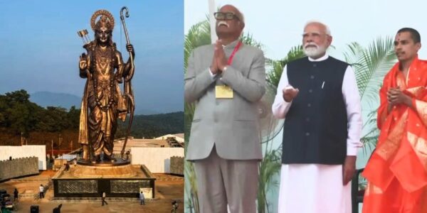 कई किलोमीटर दूर से दिखेगी भव्य झलक—PM मोदी ने दुनिया की सबसे ऊंची राम मूर्ति का अनावरण किया।