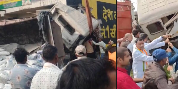 “अनियंत्रित ट्रक भवन में घुसा—PCC चीफ बैज ने लोगों संग मिलकर चालक की जान बचाई।”