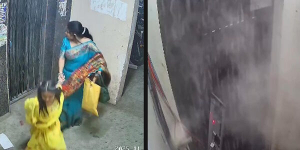 “सोसायटी में बेकाबू हुई लिफ्ट—मां-बेटी की जान बची, वीडियो वायरल।”
