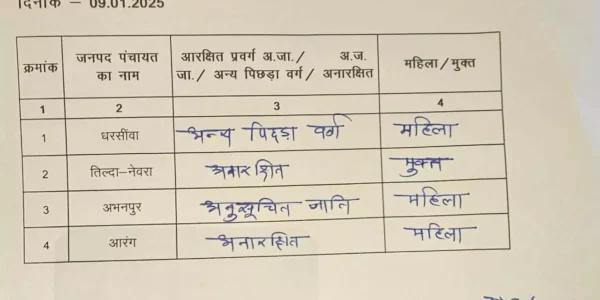 रायपुर जिले में जनपद अध्यक्ष पदों का आरक्षण