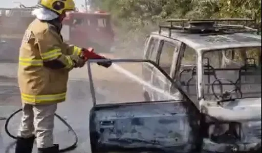 वैन में लगी आग, गाड़ी रोकने पर बाल-बाल बचा ड्राइवर
