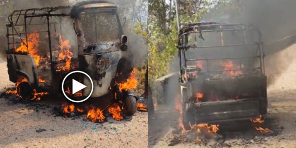 चलती ऑटो में लगी भीषण आग; यात्रियों ने कूदकर बचाई जान