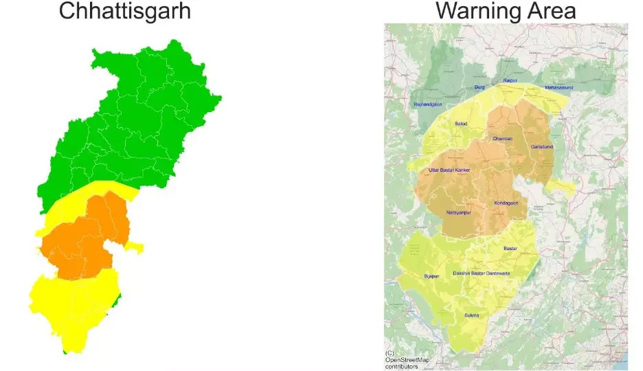 मौसम विभाग से मिली जानकारी के अनुसार, 18 अगस्त को बंगाल की खाड़ी में एक नया निम्न दाब का क्षेत्र बना है और इसी के कारण प्रदेश के कई जिलों में जमकर बारिश हो सकती है। मौसम विभाग ने छत्तीसगढ़ में अगले तीन-चार दिनों तक बारिश का दौर जारी रहने की संभावना जताई है। मौसम विभाग ने रायपुर, बिलासपुर, दुर्ग, कोरबा, जांजगीर-चांपा, बलौदाबाजार, दंतेवाड़ा, कांकेर, जगदलपुर, अंबिकापुर समेत कई अन्य जिलों में 21 अगस्त तक बारिश होने की संभावना जताई है।