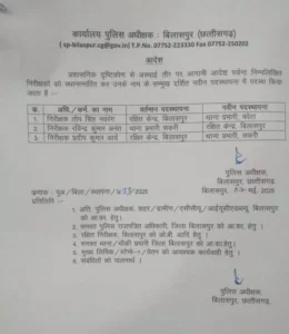 अनादि न्यूज़ डॉट कॉम, बिलासपुर। वरिष्ठ पुलिस अधीक्षक रजनेश सिंह ने पुलिस महकमे में फेरबदल करते हुए तीन थाना प्रभारियों के ट्रांसफर आदेश जारी किए हैं. इस आदेश के तहत कोटा और सकरी थानों में नए टीआई की नियुक्ति की गई है, जबकि एक थानेदार को पुलिस लाइन अटैच कर दिया गया है.