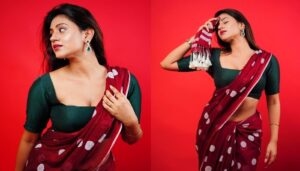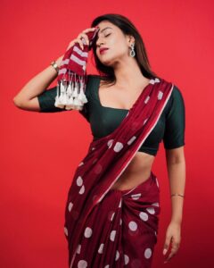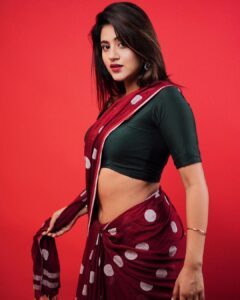 एक्ट्रेस अंजलि अरोड़ा ग्रीन ब्लाउज के साथ रेड कलर की पोल्का डॉट वाली साड़ी में कहर बरपा रही हैं।