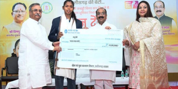 कबड्डी खिलाड़ी संजू देवी को साय सरकार से 50 लाख की प्रोत्साहन राशि, उपमुख्यमंत्री अरुण साव ने सौंपा चेक