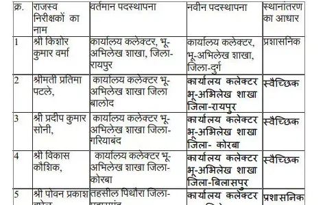अनादि न्यूज़ डॉट कॉम, रायपुर। लंबे समय से एक ही जिले में पदस्थ 58 राजस्व निरीक्षकों का तबादला किया गया है. ये तबादला आदेश त्रिलोचन पवार अवर सचिव राज्स एवं आपदा प्रबंधन विभाग द्वारा जारी किया गया है। यह आदेश…