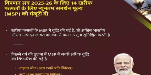 अनादि न्यूज़ डॉट कॉम, नई दिल्ली/रायपुर। देश के अन्नदाताओं के लिए आज का दिन बेहद खास और ऐतिहासिक रहा। प्रधानमंत्री नरेंद्र मोदी की अध्यक्षता में आयोजित केंद्रीय मंत्रिमंडल की बैठक में खरीफ सीजन 2025-26 के लिए 14 प्रमुख खरीफ फसलों…