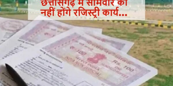 सोमवार को छत्तीसगढ़ में नहीं होगी रजिस्ट्री, पंजीयन कार्यालय रहेंगे बंद…