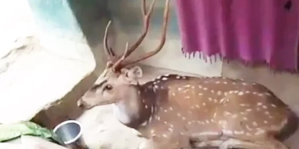 बारहसिंघा हिरण पानी तलाशते-तलाशते घर में घुसा