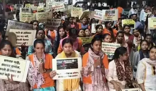 सड़क में घुटनों के बल चले बर्खास्त शिक्षक