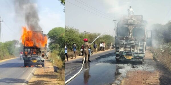 आरंग–खरोरा मुख्य मार्ग पर चावल से भरे ट्रक में भीषण आग; फायर ब्रिगेड ने मशक्कत के बाद पाया काबू