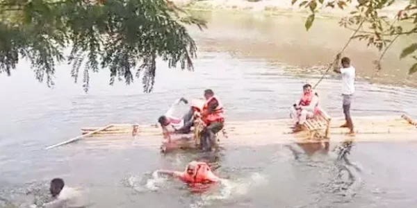 नदी में डूबते-डूबते बचे बीजेपी नेता और गनमैन