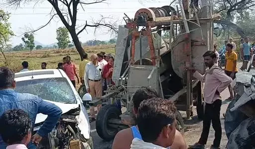 तेज रफ्तार कार मिक्सर मशीन से टकराई, 10 लोग सवार थे