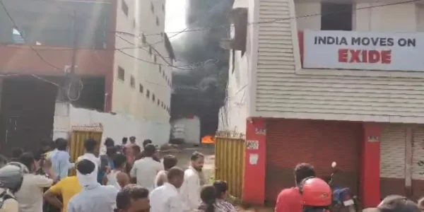 खमतराई: बैटरी फैक्ट्री में आग, पुलिस मौके पर।