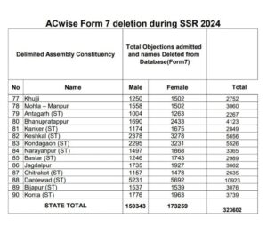 अनादि न्यूज़ डॉट कॉम,रायपुर। मुख्य निर्वाचन पदाधिकारी रीना बाबासाहेब कंगाले ने आज मुख्य निर्वाचन पदाधिकारी कार्यालय सभाकक्ष में आयोजित प्रेसवार्ता में मतदाता सूची विशेष संक्षिप्त पुनरीक्षण कार्यक्रम के संबंध में जानकारी दी।