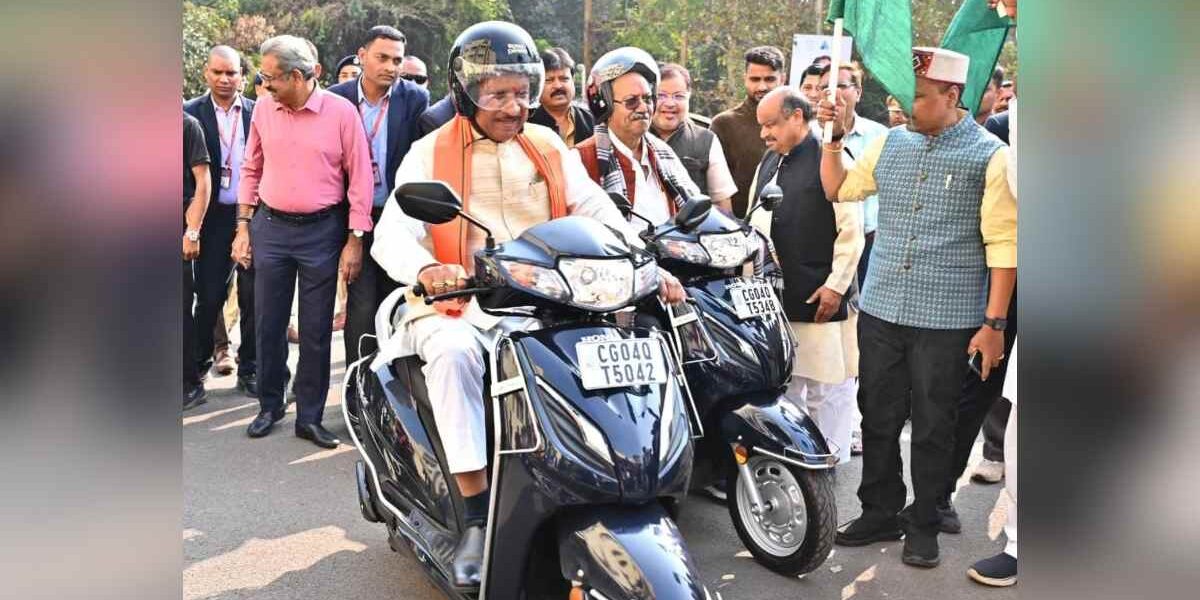 मुख्यमंत्री साय ने सड़क सुरक्षा का संदेश देते हुए स्वयं हेलमेट पहनकर बाइक चालकों के दल के साथ स्कूटी चलाई.कार्यक्रम में मुख्यमंत्री साय ने राजधानी रायपुर के पंडरी में आधुनिक लाइसेंस सेंटर कार्यालय भवन पंडरी का भूमिपूजन और प्रदेश भर में मुख्यमंत्री ग्रामीण बस योजना के तहत 12 नवीन मार्गों में 12 नवीन बसों का शुभारंभ किया.