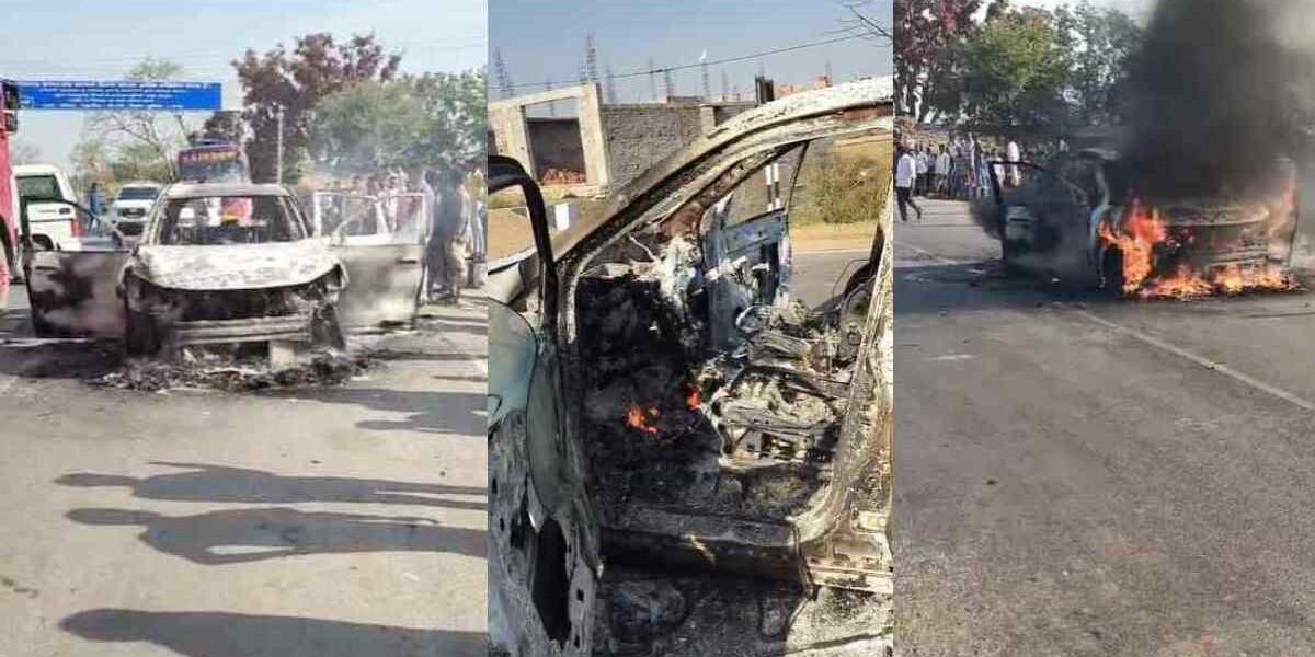 XUV कार में लगी भीषण आग, दूल्हा-दुल्हन समेत 7 लोगों ने समय रहते कूदकर बचाई जान